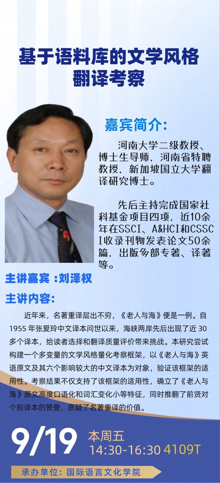 【学术讲座预告】“终南文化翻译讲坛”系列讲座第七十五期...