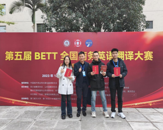 第五届BETT全国商务英语翻译大赛口译大区赛本科组“三等奖”获得者郭南伯同学(右二)