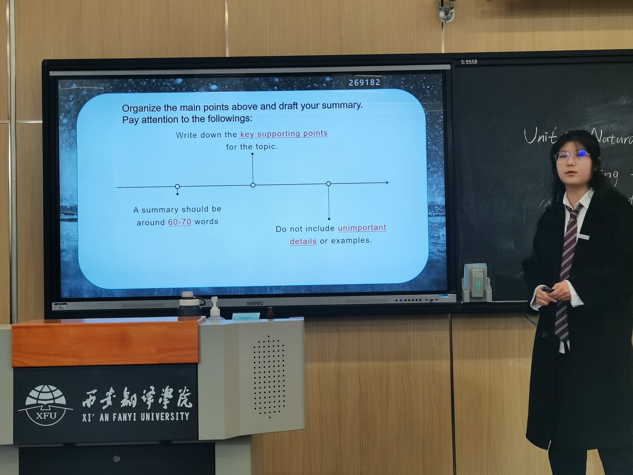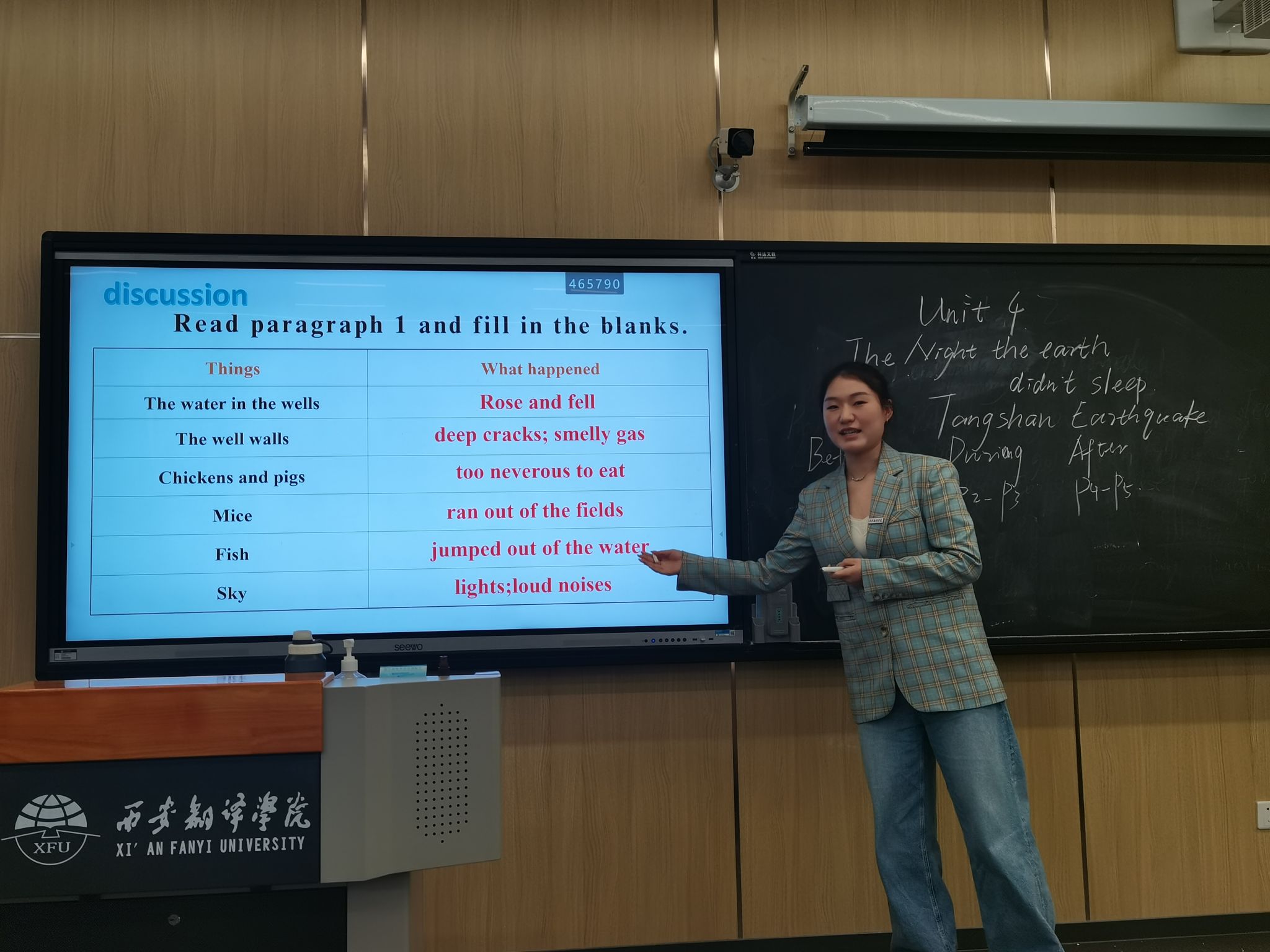 2023年11月17日14:00--17:00,大赛微型授课环节分别在4220T和4211T进行。一级竞赛的评委有闫福祥副教授、李冬花副教授、刘隽老师;二级竞赛的评委有朱广珍老师,冯军英老师和李静老师。本次半决赛吸引了来自本科英语专业教育方向、文学方向、翻译方向的100多名学生前来观摩。