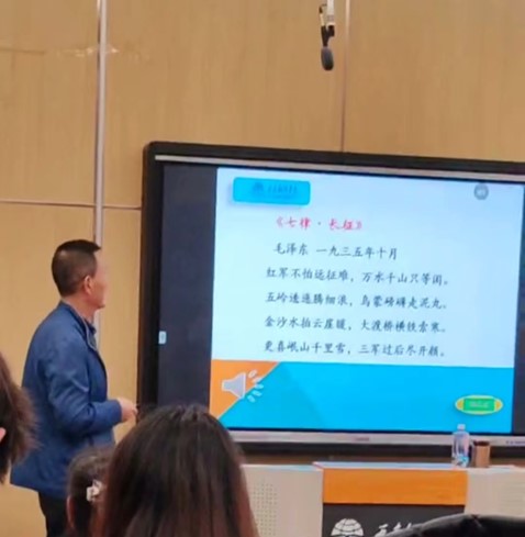 讲堂以讲述长征、萧华和《长征组歌》引入,充分介绍了长征历程及其相关艺术作品,同时介绍创作者萧华先生的创作历程与其个人生平,以及简述《长征组歌》作品意义,赏析其中两曲。随后伴随张金柱教授激昂澎湃的歌喉,进行了对《长征组歌》的歌词赏析,张教授以唱随讲,生动演绎作品中或低沉,或高昂的情感。讲堂末尾,张教授对《长征组歌》的艺术特色进行了简明扼要的赏析与个人见解的分享。