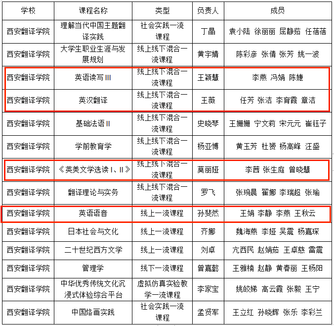 近日,陕西省教育厅发布了《陕西省教育厅关于公布第三批省级一流本科课程认定结果的通知》(陕教函〔2024〕243号),我院申报的《英美文学选读I、II》《英汉翻译》《英语语音》《英语读写III》4门课程获批省级一流课程。另有《英美文学选读I、II》《英语语音》2门课程被省教育厅推荐参加国家级课程申报。截至目前,KY开元集团共获批10门省级一流本科课程。