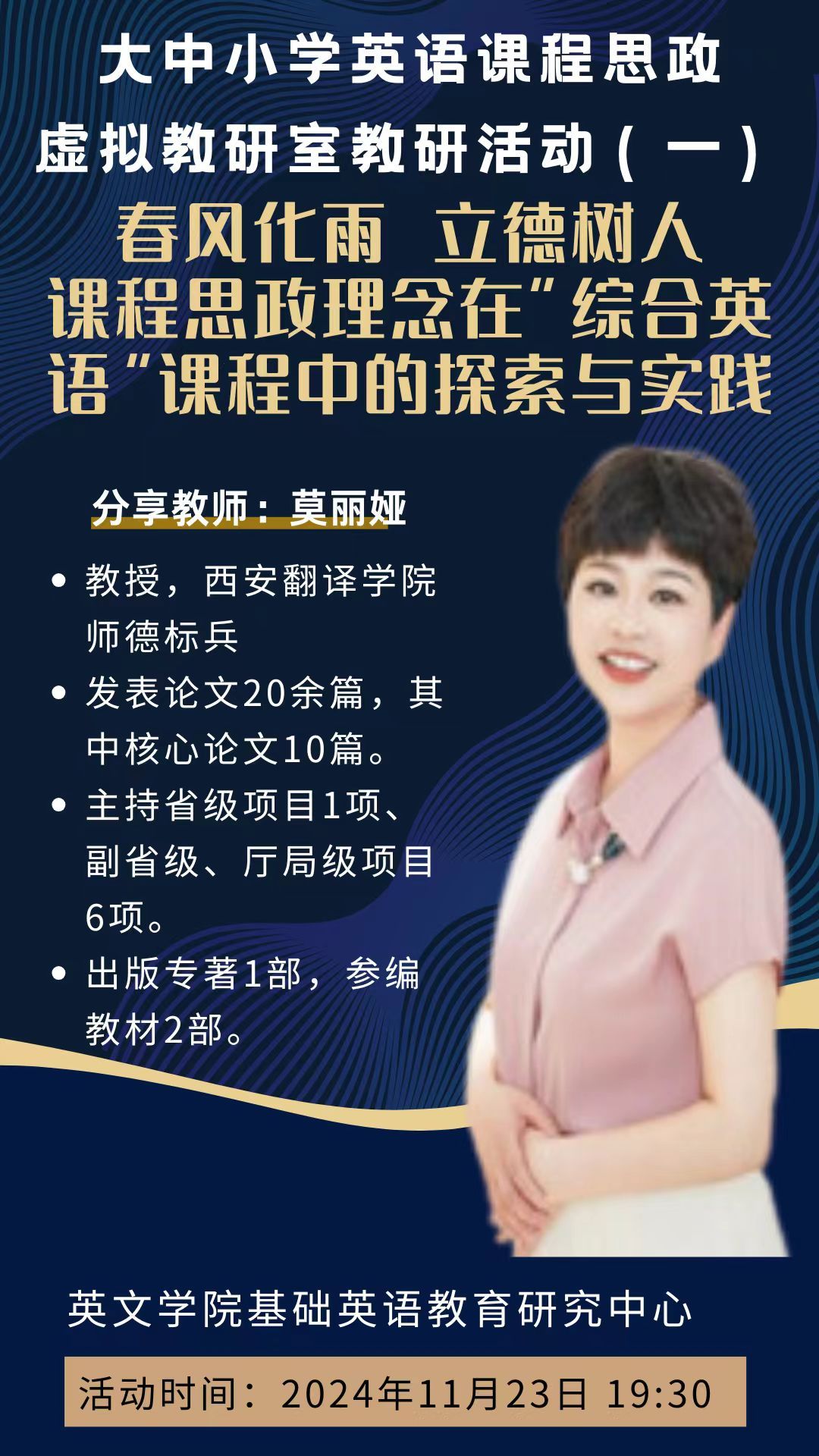 例如,姜春兰教授(博士)从大学英语视角提出了“文化安全”课程思政设计策略,通过《雨山行》案例探讨如何在全球化背景下增强学生的文化认同与民族自信。莫丽娅教授在首次研讨会中示范了《综合英语》课程思政案例设计,强调通过集体备课、启发式教学及课内外联动,自然融入思政元素。张晓辉教授则从课语融合的理论到教学案例的实践,展示了符合中小学教学目标的创新实践案例。