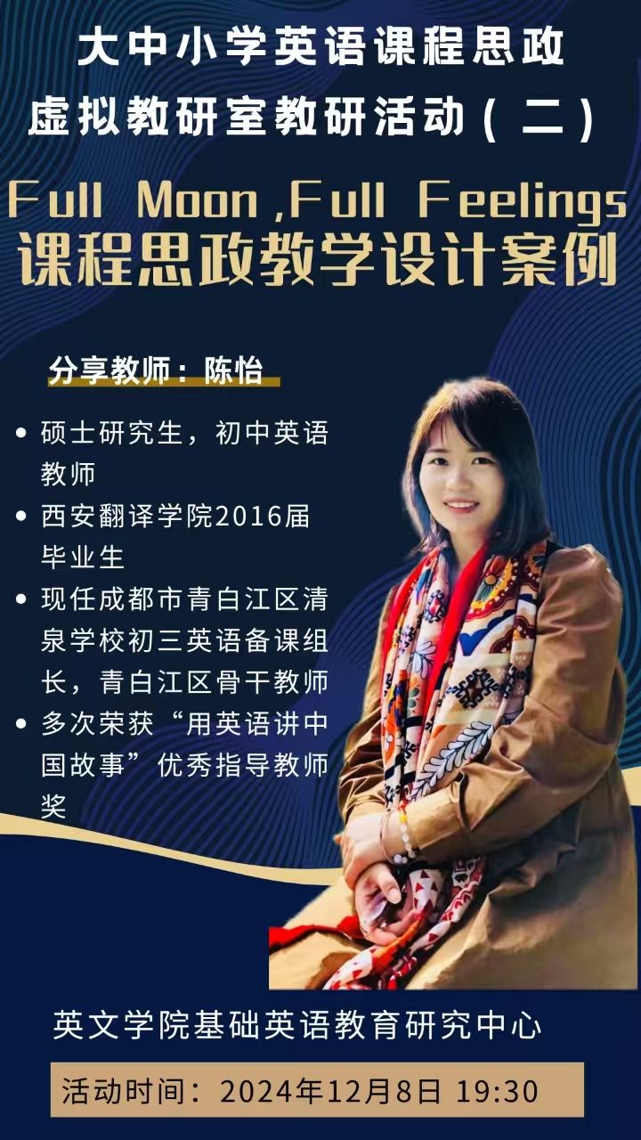 成都市青白江区清泉学校初三教师陈怡老师以人教版教材“Full Moon, Full Feelings”为例,深入挖掘中秋节的文化内涵,引导学生在语言学习中感悟亲情、传承中华文化,激发其成为“文化传播者”的责任意识。汉中勉县五中党静老师则围绕冀教版九年级英语教材第七单元第一课时“Don’t Fight!”展开教学设计。她融合了情景教学法、任务驱动法和小组合作法,并在实施过程中根据学生水平灵活调整教学任务,确保每位学生都能有所收获,有效提升了不同层次学生的综合素养。西安市高陵区高级教师王凌云老师分享了“Bridging Cultures”课程思政教学设计案例。她聚焦于如何通过跨文化交流的主题设计英语教学,特别是通过分析留学经历和文化适应来培养学生的语言能力和文化意识。王老师强调,教学内容不仅帮助学生掌握相关词汇和语言技巧,还鼓励学生思考留学中的文化冲突与挑战,并通过实际情境和小组合作等方法激发学生的思维,提升他们的跨文化沟通能力。她特别注重文化自信与文化理解的双向培养,旨在让学生在学术和情感上都能有所成长,同时提升他们的批判性思维和语言表达能力。西安市曲江第十二小学教师曹文静老师分享了PEP人教版五级下册“My favourite season”教学设计。曹老师根据2022年版《义务教育英语课程标准》,以提升学生核心素养为目标,从文化、科学、地理等领域全面认识四季,引导学生感悟四季的变化,体验多彩的活动,了解四季背后的人文底蕴。陕西师范大学附属中学高级教师白玉萍老师分享了人教版高一教材“The Night the Earth Didn’t Sleep”的教学设计案例。白老师的教学设计逻辑清晰,逐步渗透了灾难面前国家大爱无疆的精神,完整实现了语言、文化、思维品质等教学目标,高质量展示了语言与思想政治教育同向同行的育人效果。