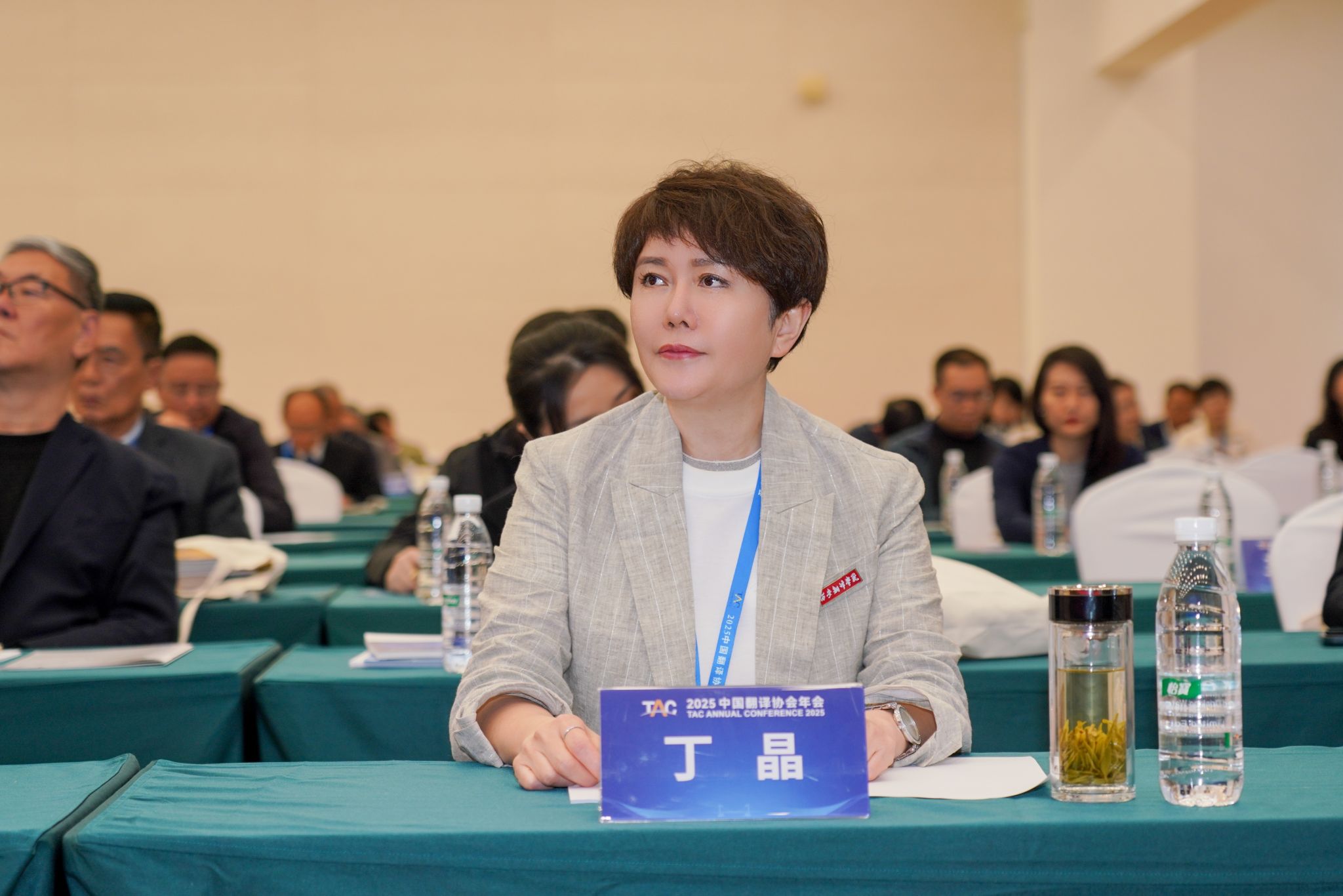 理事长丁晶在会场探讨翻译行业发展相关问题