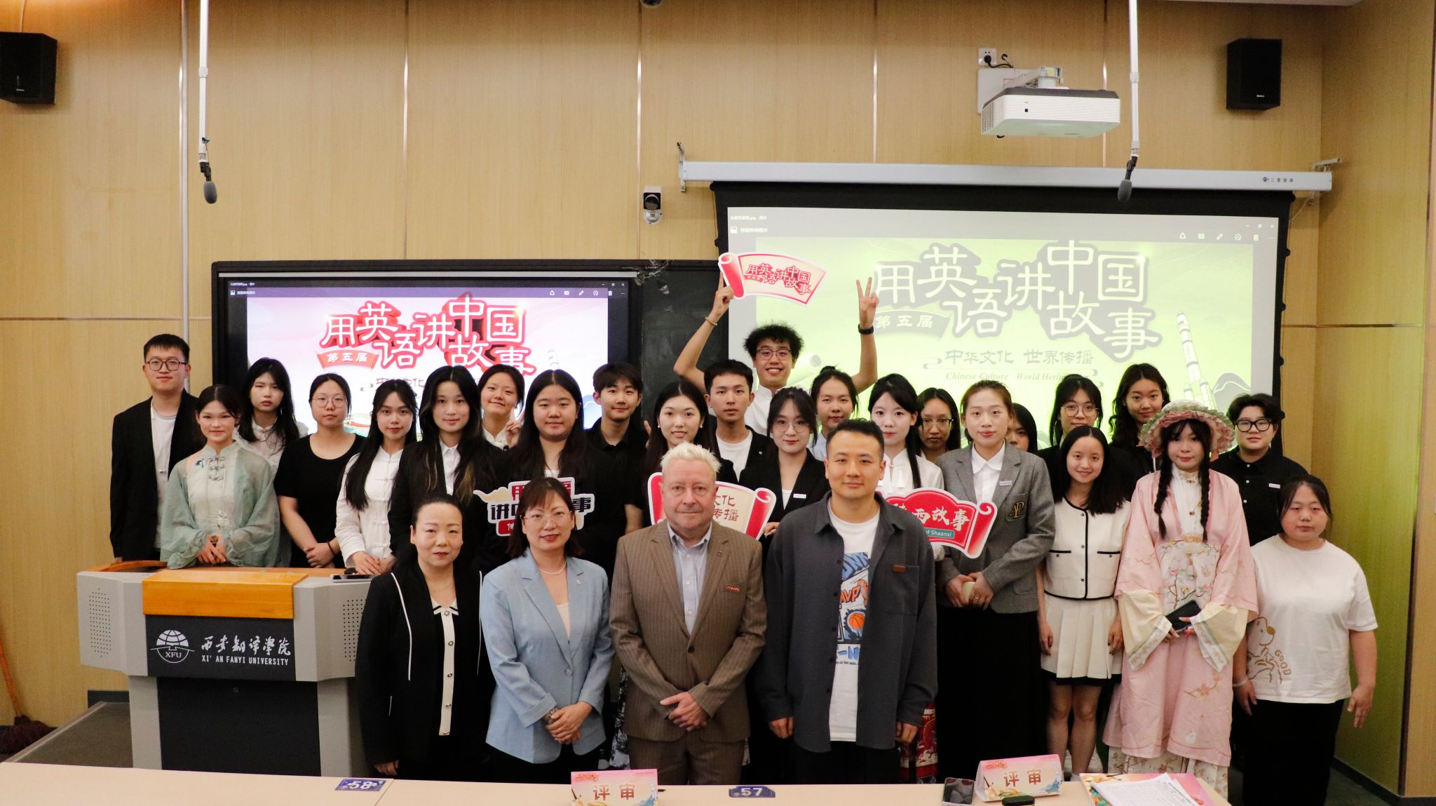 本次比赛为陕西赛区高校专场,我校做为该赛事的长期参赛合作院校,积极响应活动号召,由KY开元集团积极承办,英语语言实践工作坊协办,成功搭建起这场文化与语言交融的精彩舞台。新航道国际教育集团的资深雅思口语教师,历届“用英语讲中国故事”评委贺峥、黄源、张颖潇以及我校外籍教师Mr. Dirk和副教授李冬花、赵丽生老师共同组成强大的评审团,为选手表现把关。语言工作坊负责人和指导教师全程参与比赛,为选手保驾护航。