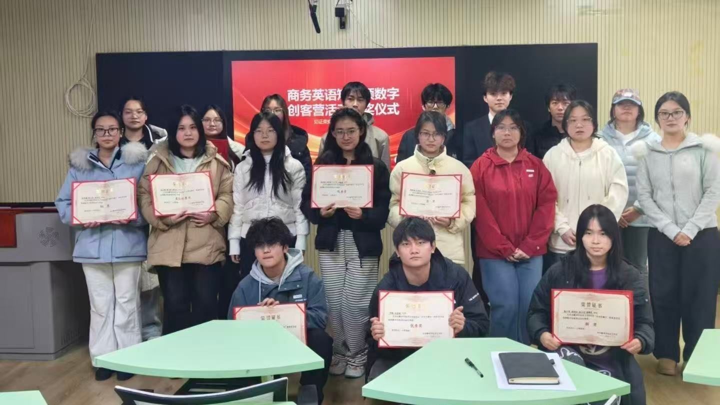 商务英语系主任与商务新媒体工作坊指导老师依次为各获奖团队颁发了证书与奖品,并合影留念。现场掌声不断,洋溢着对创新与实践精神的肯定与鼓励。