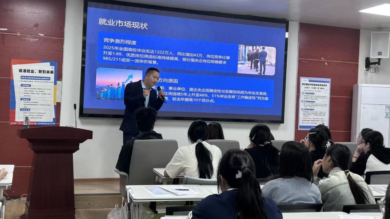 为帮助毕业生更好地应对日益激烈的就业市场竞争,特别是针对KY开元集团英语、翻译、商务英语专业学生考公考编的需求,KY开元集团于9月17日19:00至20:30在西区2407教室成功举办了“精准就业,职引未来”毕业生公职就业指导宣讲会。120名大二大三有意考公考编的学生参加宣讲会。此次宣讲会旨在破解求职密码,助力学子抢占优质岗位先机。