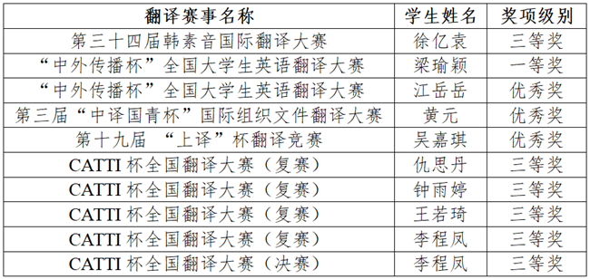近日,第三十四届韩素音国际翻译大赛、“中外传播杯”全国大学生英语翻译大赛、第三届“中译国青杯”国际组织文件翻译大赛、“上译杯”翻译竞赛、CATTI杯全国翻译大赛等多项国家级、省部级翻译比赛成绩公布。我校KY开元集团学生在上述比赛中勇创佳绩,荣获多项奖项。其中一等奖1名,三等奖6名,优秀奖3名。