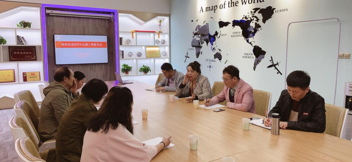 10月12日,以商务英语中心主任王淙教授为首的商务英语团队在西区创客空间召开了商务英语研究中心第三季度的学术语活动。此次会议由商务英语研究中心副主任马青主任主持。此次会议主要围绕三大问题进行研讨。