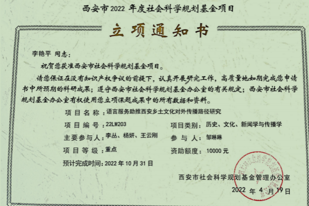 2022年度陕西省社科基金项目(1项),主持人:莫丽娅