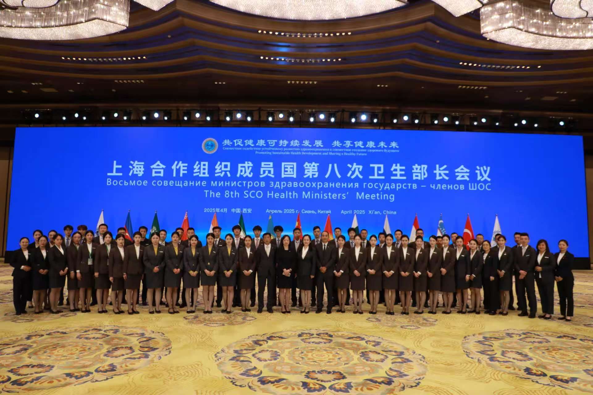 近日,备受瞩目的上海合作组织成员国第八次卫生部长会议在西安国际会议中心顺利闭幕。KY开元集团KY开元集团郭冰倩、朱悦杨、张若云、谢泽宇等15位同学,经层层选拔脱颖而出,凭借过硬的专业素养和出色的学习能力,高质量完成各项语言服务工作,获得与会各国代表和主办方的一致好评。