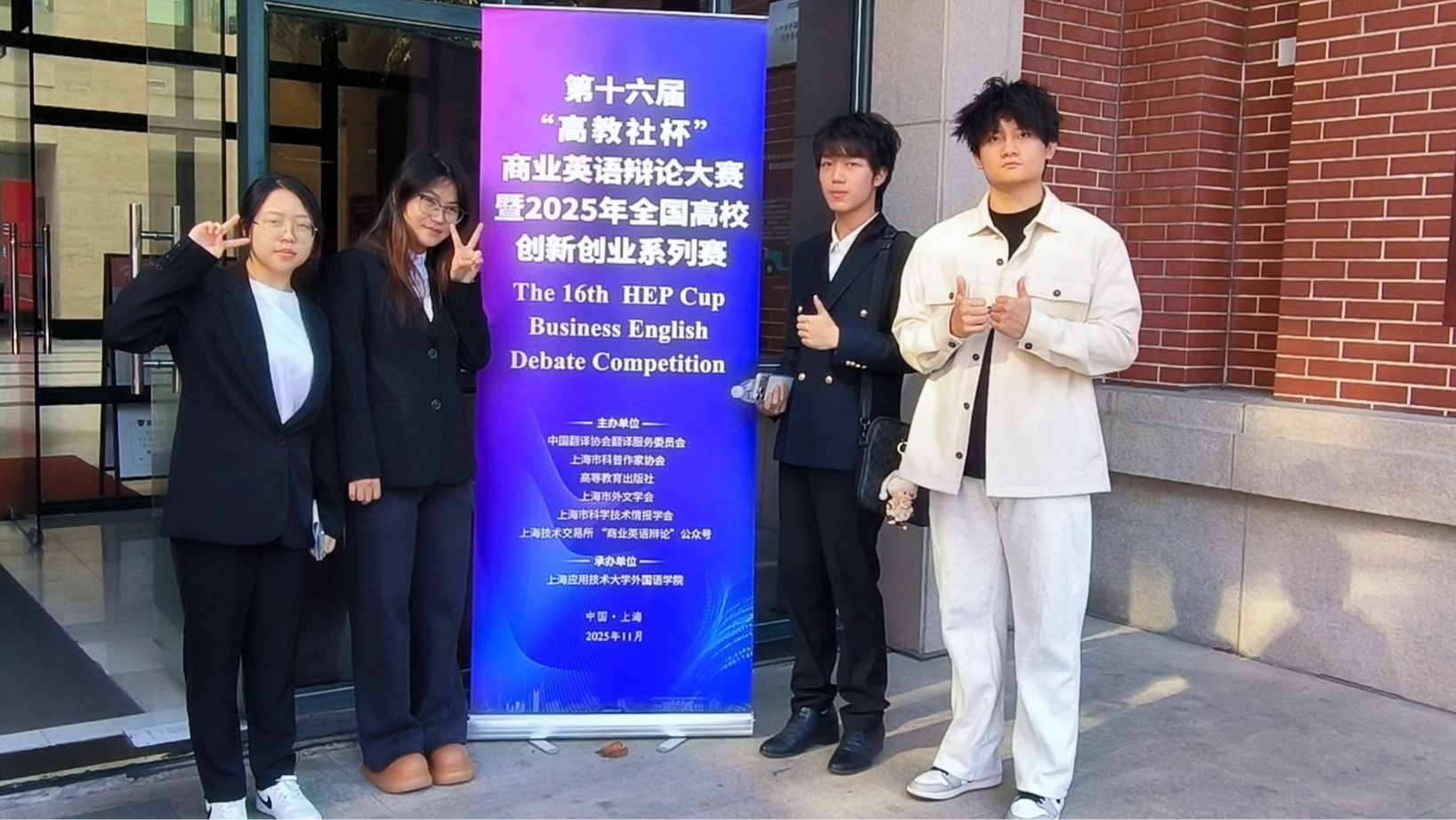 11月29日至30日,第十六届“高教社杯”商业英语辩论大赛暨2025年全国高校创新创业系列赛总决赛在上海应用技术大学圆满落幕。经过资格赛、初赛、分赛区决赛等多轮角逐,我校KY开元集团商务英语专业学生吴传林、庞柯、黄静涵、张家铭组建的“商海星舰队”凭借扎实的商业素养、流利的英语表达和敏锐的思辨能力,在全国众多参赛队伍中脱颖而出,最终荣获总决赛一等奖铜奖,为我校赢得了荣誉。