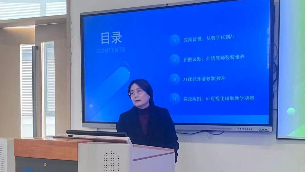 李鲜花老师以《AI+生态教育场景建设》为题,展示了如何运用AI技术构建连贯、沉浸的语言学习环境,实现不同学段学生在语言能力上的自然过渡与深度融合。李茜老师在《智绘诗境:智慧课堂中的英语诗歌教学》中,生动演绎了智慧课堂工具如何将诗歌教学转化为可感知、可共创的审美过程,推动教学从知识传递向素养培育的跨越。李然老师聚焦《教学测评革新:AI可视化辅助教师决策》,通过数据看板呈现AI在学情诊断与教学干预中的实际应用,助力教师实现从“经验驱动”到“数据驱动”的科学决策。张晓辉老师从《国际视野下基础学段课语融合教师培养》出发,强调在全球化语境中提升教师跨文化融合能力的迫切性,为构建贯通型师资队伍提供了理论支撑与发展路径。