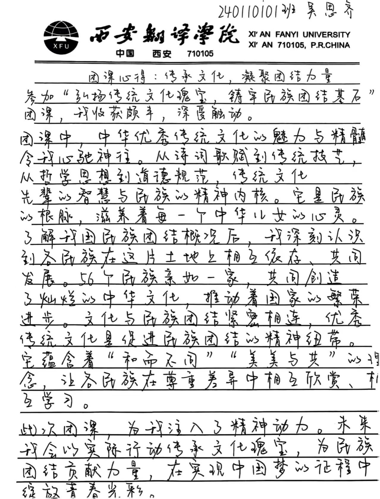 当代青年,是文化传承与民族团结的 “主力军”:主动学习,深耕文化内涵:通过阅读经典、体验非遗(如书法、剪纸),领悟“和而不同”的哲学智慧,让传统文化基因融入青春血脉。互助共进,凝聚团结力量:参与跨民族志愿服务(如支教、社区帮扶),在知识传递与文化互鉴中,架起民族沟通的桥梁-,投身实践,助力民族发展:将个人理想与国家战略同频共振,参与民族地区经济建设、文化创新(如电商助农推广民族特色产品,用新媒体传播民族文化故事),以行动诠释“各民族共同团结奋斗,共同繁荣发展”。