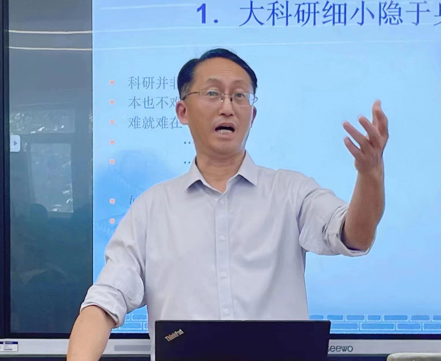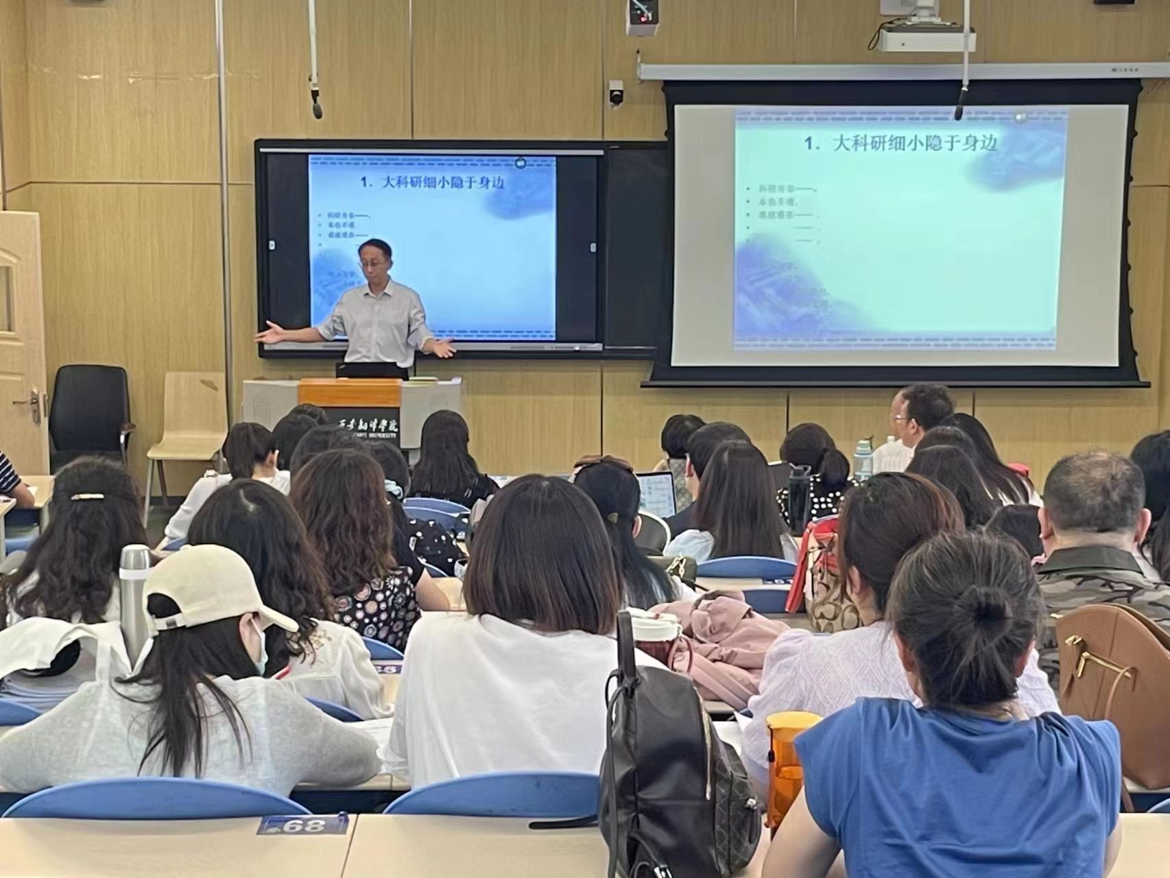 黄教授鼓励两院中青年教师,平时一定要关注“两报一台”,也就是《环球时报》、《参考消息》和中央电视台发布的时政热点,多看《新闻联播》、《焦点访谈》等报道纪实类节目,只要用心观察,无论是宇宙探秘、医疗卫生、家庭保健、生命科学,还是能源科学、地球科学和环境科学方面的研究课题,都能被我们找到。