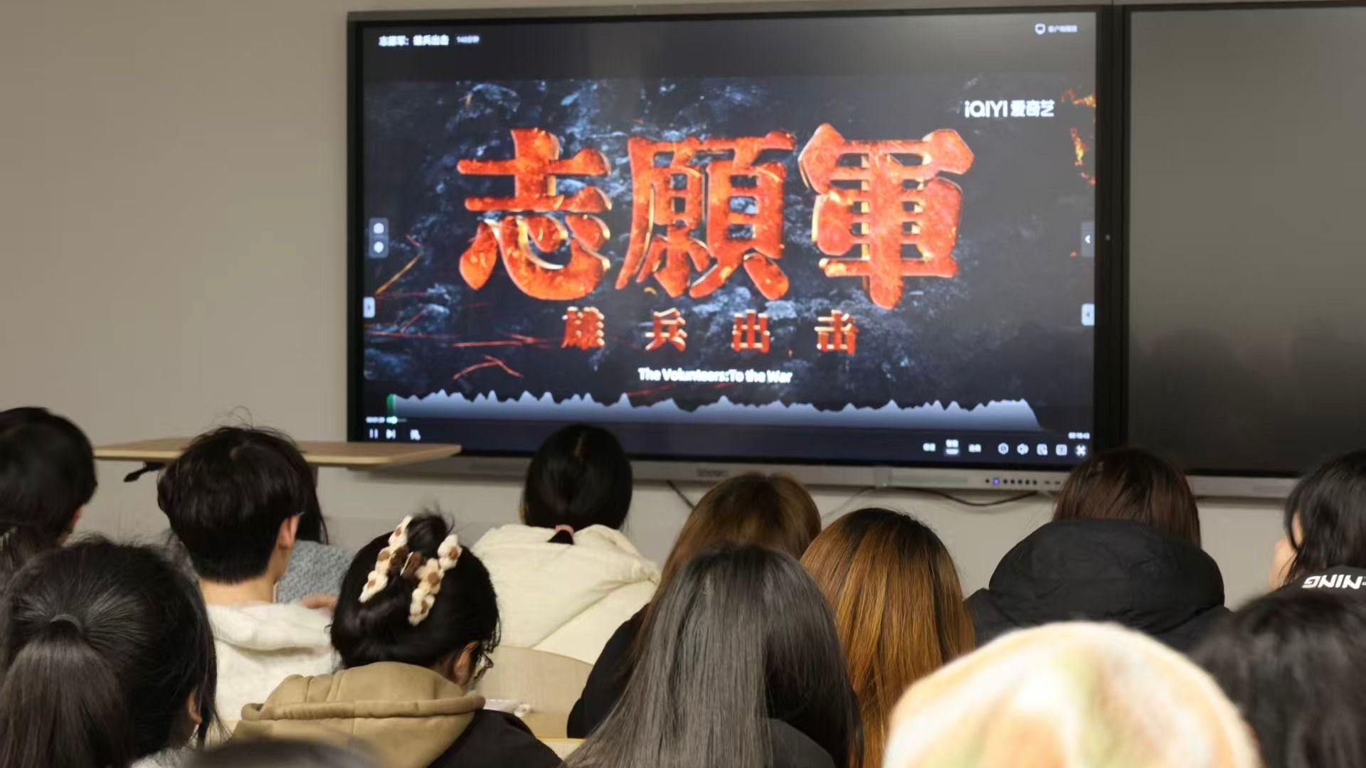 观影前,党建雄老师发表动员讲话。他强调,抗美援朝战争是立国之战、正义之战,铸就了伟大的抗美援朝精神,在中国近现代史上具有不可磨灭的重要地位。他勉励全体入党积极分子,要以革命前辈为榜样,深刻感悟“祖国和人民利益高于一切”的初心,将前辈意志融入青春理想,以实际行动为祖国繁荣昌盛贡献力量。