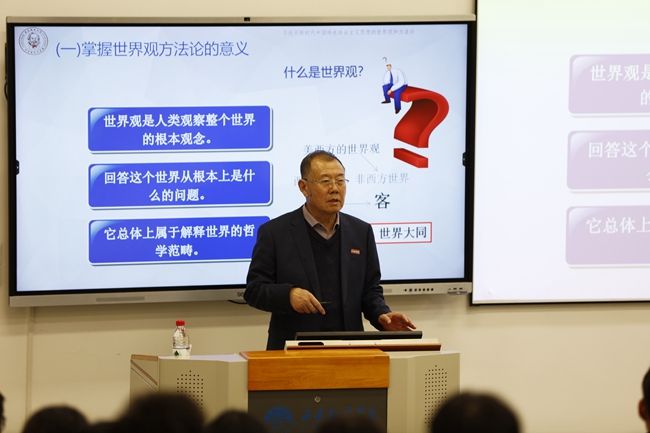 杨学兵教授围绕“习近平新时代中国特色社会主义思想世界观和方法论的生成逻辑”“习近平新时代中国特色社会主义思想所蕴含的精髓要义”“准确把握‘六个必须坚持'的基本内涵”三个部分,为大家进行全方位、多角度的理论解读。他以习近平总书记在主题教育工作会议上发表的重要讲话为切入点,强调要全面了解习近平新时代中国特色社会主义思想世界观和方法论的意义与背景,深入学习习近平新时代中国特色社会主义思想的世界观和方法论,牢牢掌握习近平新时代中国特色社会主义思想这个科学真理,不断增进对党的创新理论的政治认同、思想认同、理论认同与情感认同,自觉用习近平新时代中国特色社会主义思想指导各项工作。