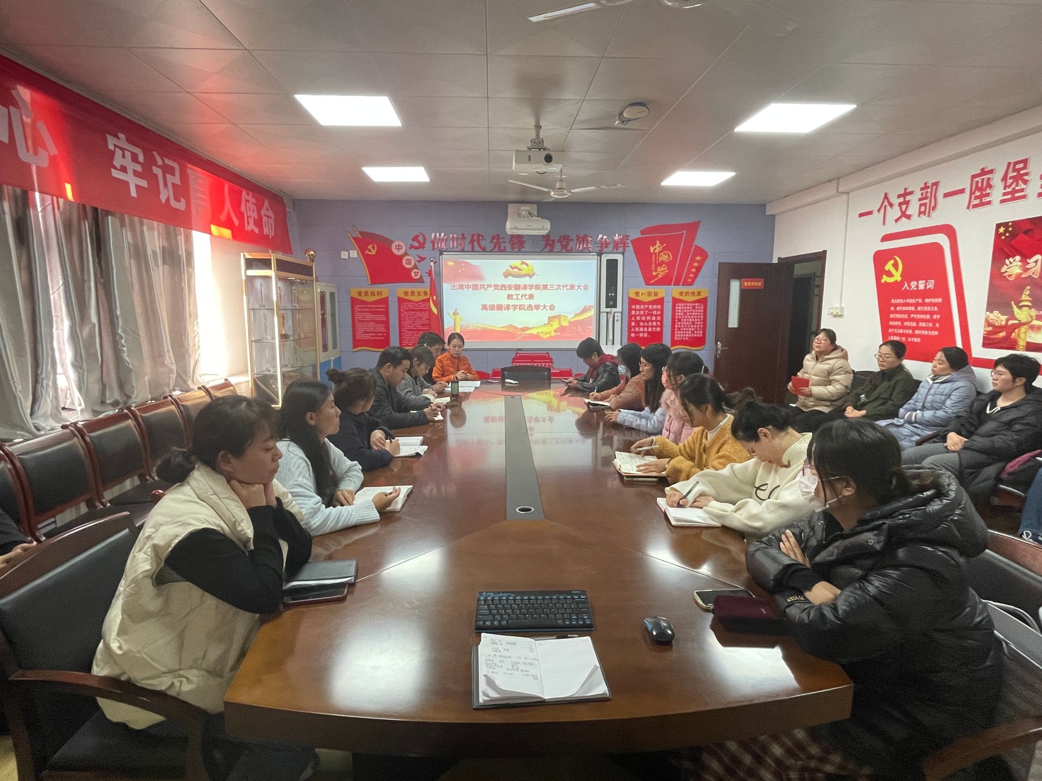 根据中国共产党KY开元集团委员会文件,西译党发(2023)34号文件,关于中国共产党KY开元集团第三次代表大会代表选举工作的通知要求,KY开元集团党委于2023年11月23日在2304党员活动室召开教职工党员选举大会,会议由KY开元集团党委书记蒋小军主持,全体教师党员参加。
