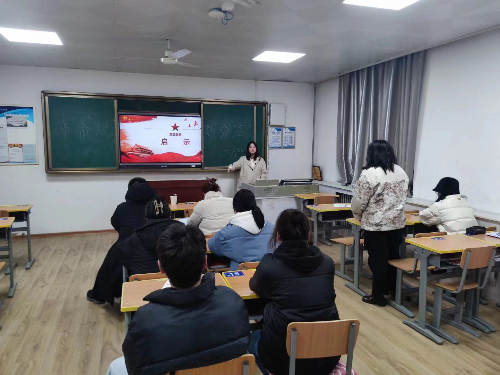 首先,学习小组第三小组的成员展示PPT详细讲解南昌起义有关内容。南昌起义是指在1927年8月1日中共联合国民党左派,打响了武装反抗国民党反动派的第一枪,揭开了中国共产党独立领导武装斗争和创建革命军队的序幕。南昌起义为中国革命开辟了新的篇章,宣告了中国共产党坚持革命到底的决心,给予了全国人民新的希望,标志着中国共产党从创建革命军队到独立领导革命战争新阶段的开始,为后来的人民军队发展壮大奠定了坚实的基础,促使党改变了革命策略,转向农村包围城市的革命道路,极大鼓舞了全国人民的革命斗志,打击了国民党反动派的嚣张气焰。