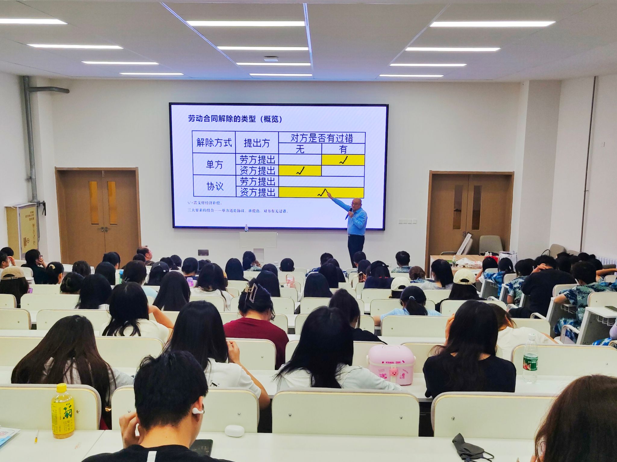 随后,一场别开生面的讲座在5117T举行。讲座伊始,徐忆红老师介绍与会嘉宾,并对张博科长和马潇律师的到来表示欢迎。王颖慧主任介绍了本次讲座的主题,她强调了法律知识对于大学生求职的重要性,并鼓励学生们珍惜这次难得的学习机会。讲座中,马潇律师紧扣大四学生即将面临的就业问题,以“入职、劳动权利和义务、离职”三大关键环节为脉络,为学生进行了细致入微的讲解。马潇律师结合实际案例,深入浅出地为学生们讲解了在求职过程中可能遇到的招聘陷阱、劳动合同纠纷等问题。同时,针对学生们普遍关心的劳动权益保障、试用期规定等热点话题,进行了深入剖析和耐心解答,引导学生们树立正确的法律观念和维权意识。