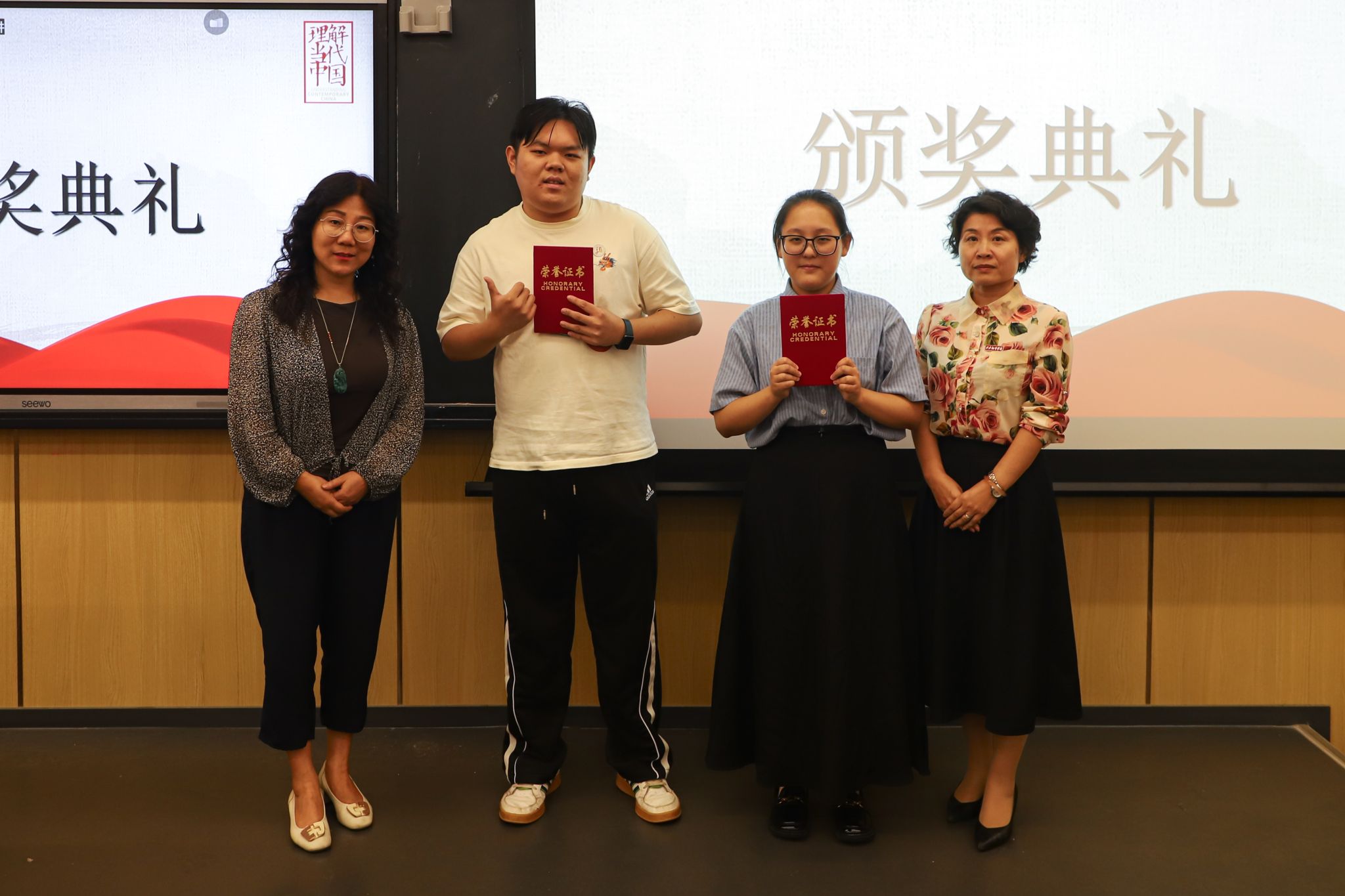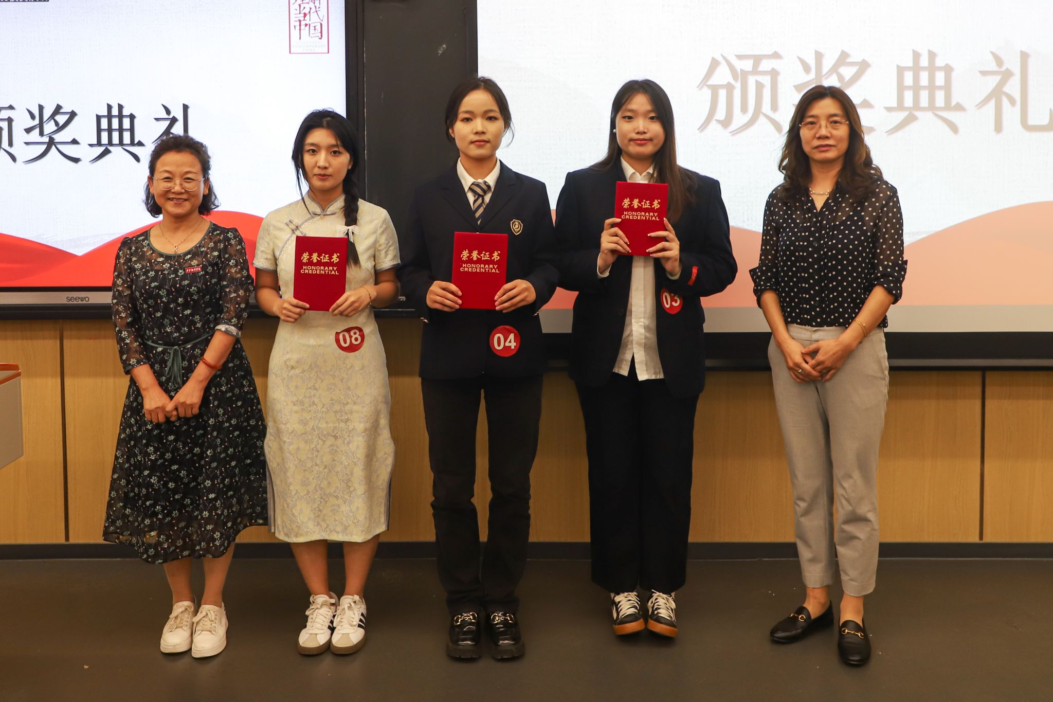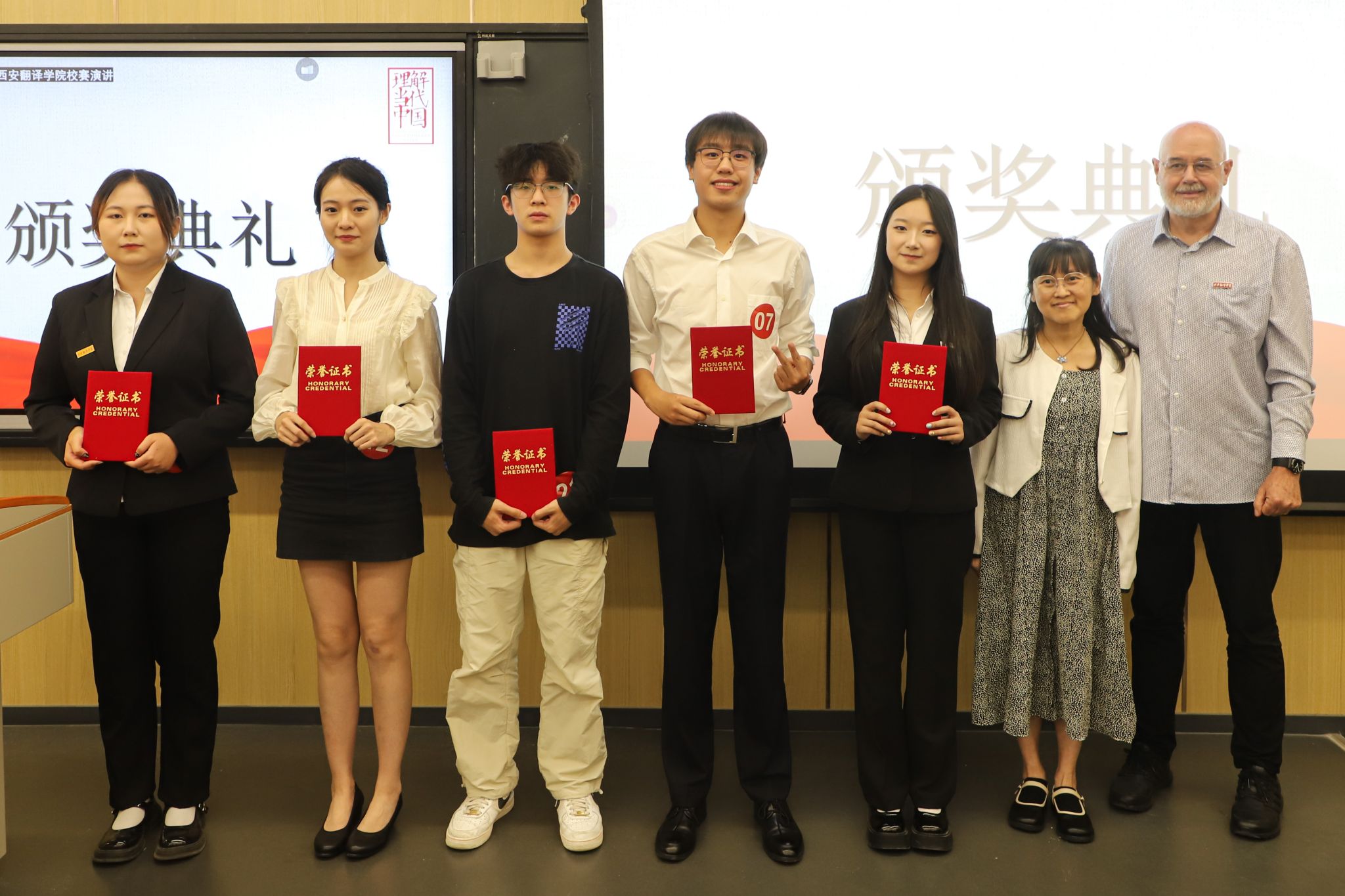 大赛以“理解当代中国”为主题,围绕当代中国的核心概念和重要政策展开。比赛分两部分进行,包括定题演讲(60分)和即兴问答(40分)。大赛邀请西安医学院外国语学院院长薛英利教授、陕西师范大学副教授李琼、KY开元集团教授李鲜花、我校外籍教师 Steve和 Cynthia担任评委。本次演讲赛的主题是“The Chinese Dragon is Good”, 吸引了众多大学生积极参与。参赛选手来自不同的学科背景,除英语外,包括汉语言文学、教育、艺术等多个专业。赛场上,选手们用出色的英语表达能力,自信地阐释各自对“中国龙”的深刻理解,践行新时代外语人“理解中国、沟通世界”的使命。即兴问答部分赛题以二十大、治国理政等内容,紧扣习近平新时代中国特色社会主义思想的核心要义, 全面考核选手对中国之路、中国之治、中国之理的理解。经过激烈的竞争,最终KY开元集团张浩、任丽颖荣获一等奖,刘欢、施钰萌、朱显宜荣获二等奖,江星磊等5人荣获三等奖。