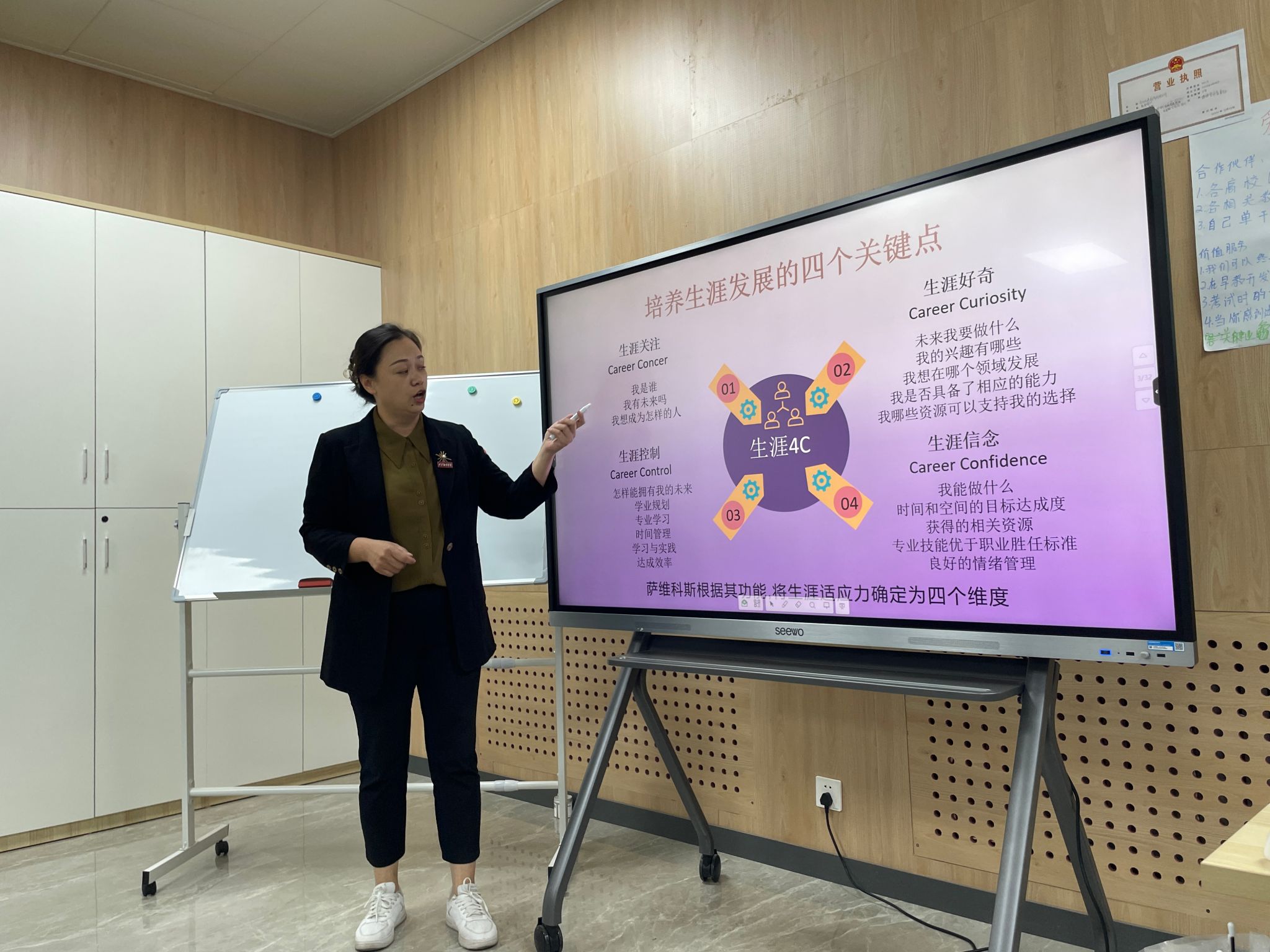 活动在一片热烈的氛围中拉开帷幕。首先,就业中心的资深讲师张芳老师为在场的学工人员带来了一场精彩的职业生涯规划理论讲座。讲师深入浅出地讲解了生涯发展的四个关键点:自我认知、环境探索、职业定位与行动规划。这四个关键点构成了职业生涯规划的基石,是每位学生在职业道路上必须面对和思考的问题。通过生动的案例和深入浅出的分析,讲师让在场的学工人员深刻认识到,只有帮助学生准确把握自身优势和兴趣,深入了解行业动态和市场需求,才能制定出符合个人特点的职业规划,从而在激烈的就业竞争中脱颖而出。