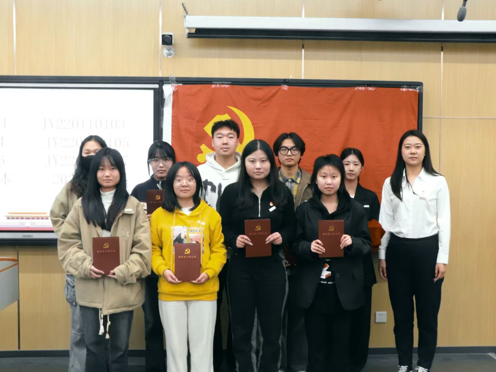 会上,KY开元集团第三党支部书记贾佳静,宣传委员赵永祎分别向LY220110101、JY220110103、JY220110104、JY220110105、JY220110106、JY220110107、2024级专升本,2022级专科(译创),和FW220110101、CB220110101、CY220110101、CY220110102、JY220110101、JY220110102、DS220110101,DS220110102班学生代表授予时事政治反思记录本。