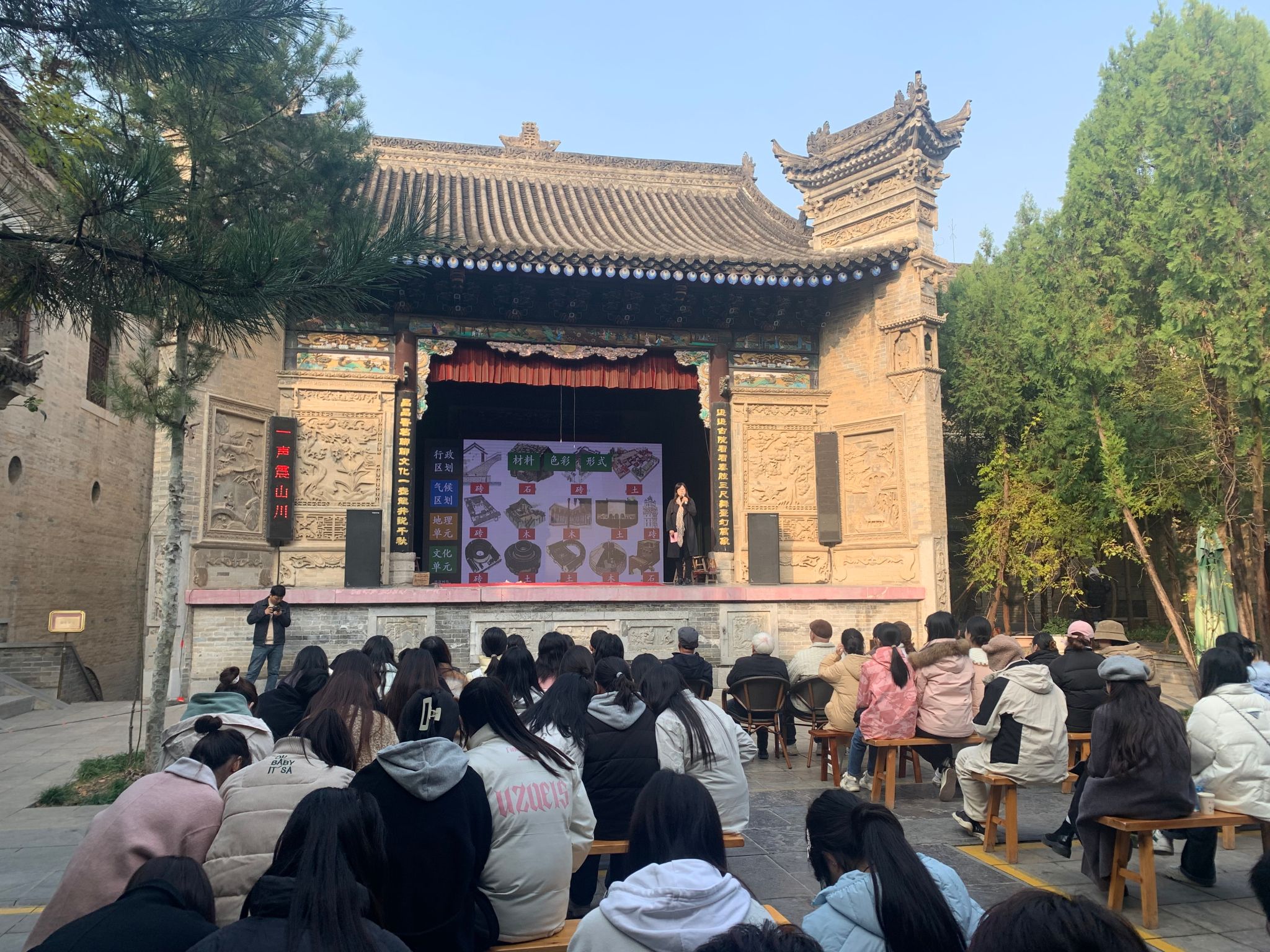 马小青主任向同学们讲解了赵家门楼、“麒麟望日”影壁、拴马桩展厅、汉画像石展厅、西京雄镇城门楼、古民居街道(梨园、阎敬铭宅院、崔家槐宅院、孙丕扬宅院、耿家宅院、稷王庙)。在梨园,同学们欣赏了曾经登上央视春晚舞台、国家级非物质文化遗产代表性项目“华阴老腔”,领略了关中民间传统艺术的魅力。
