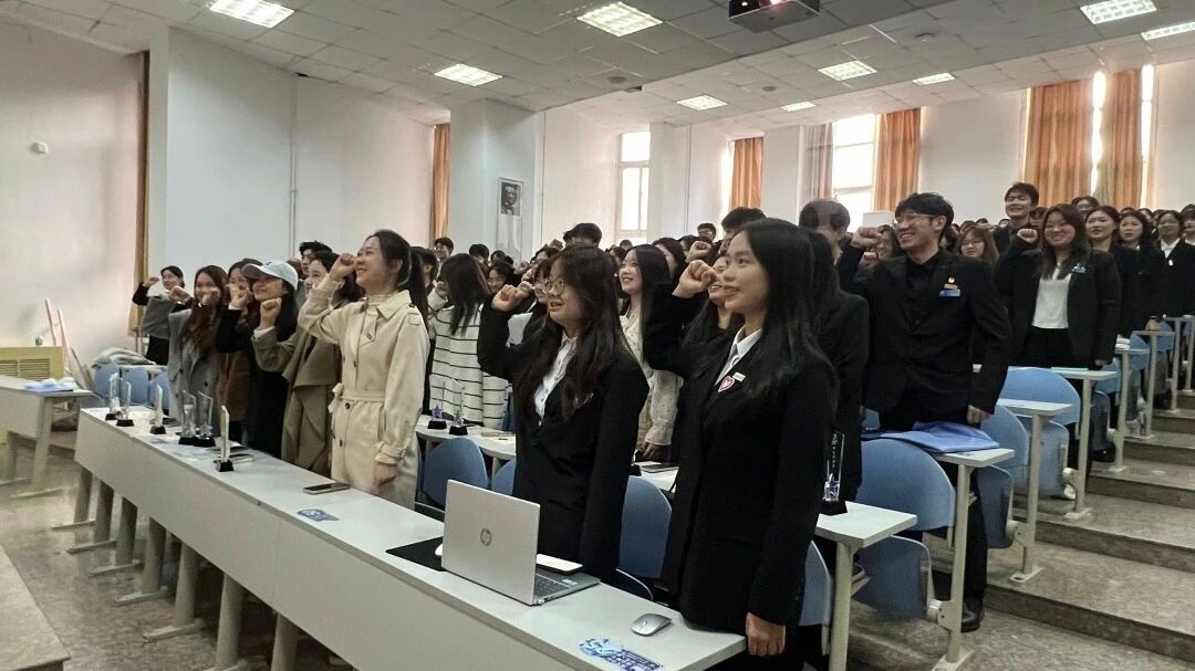 授旗环节庄重而神圣,鲜艳的旗帜在新旧成员手中依次传递。这面旗帜承载着组织的使命与荣光,象征着责任的接续与传承,更激励着新一届成员以昂扬姿态开启新的征程。