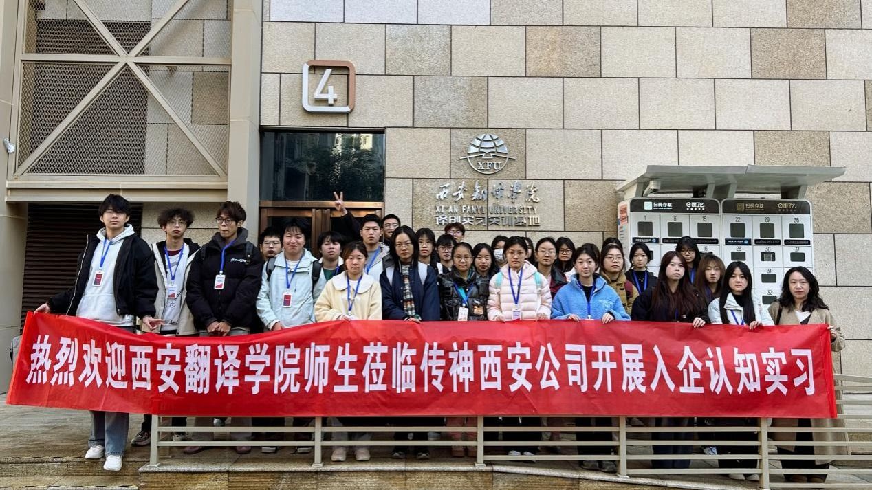 上午8点,实习队伍从学校统一出发。抵达传神公司后,企业对同学们的到来表示热烈欢迎并合影留念,为学生发放实习工牌并安排专属工位。在李卫红老师的带领下,学生们参观了公司办公环境,通过企业宣传展片系统了解了传神语联网的发展历程、50多个领域的业务布局、80余种语种服务能力,以及在AI大语言模型、数字孪生译员等核心技术上的创新成果,对公司的行业地位与技术实力有了直观认知。