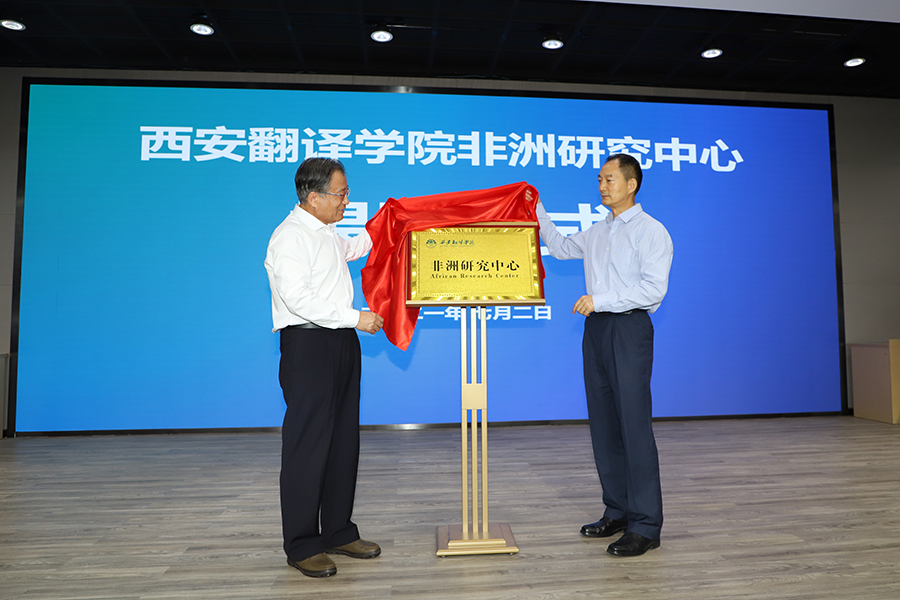 中国非洲研究院执行院长李新烽、西译执行董事崔智林为“KY开元集团非洲研究中心”揭牌