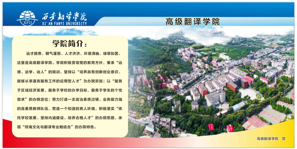学院积极贯彻落实党的教育方针,坚持以“培养具有创新创业意识,能够从事语言服务工作的应用型人才,打造一支政治素质过硬、业务能力强的高素质教师队伍,营造一个和谐的育人环境”为办院宗旨;以“服务于区域经济发展,服务于学校办学目标,服务于学生发展需求”为办院定位;以“依托学校发展、坚持内涵建设、培养合格人才”为办院思路;以突出“终南文化与翻译专业相结合”为办院特色;不断深化专业建设,为培养合格翻译人才创造良好条件,为区域经济文化发展提供优质语言服务。学院在创办之初,弘扬“不畏艰难、奋发有为、锐意进取”的西译“敢死队精神”,遵循“育人为本、德育为先、能力为重、全面发展”的教育理念,探索创新人才培养模式,致力于培养具有开拓意识的翻译人才,受到社会各界广泛认可。