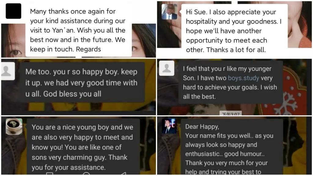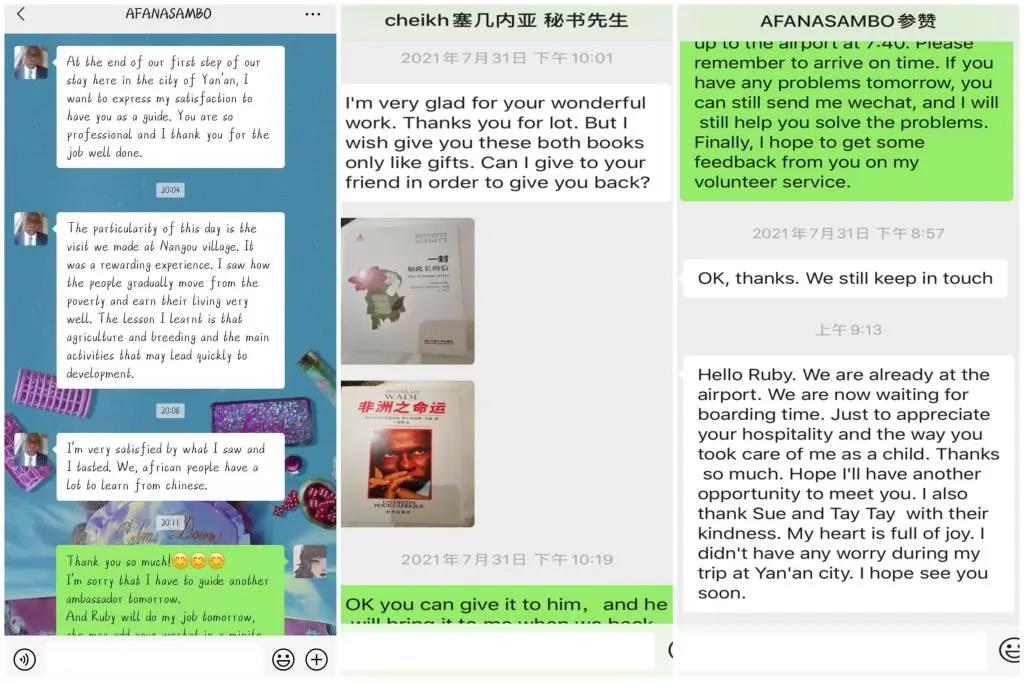 | ▲喀麦隆、赛几内亚大使为我校学生发来微信感谢 |