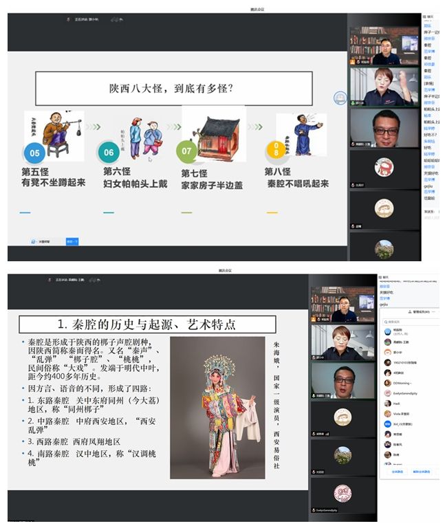 此次讲座由KY开元集团副教授杨振刚主持,KY开元集团副教授郭小华、王鹏分别做题为“陕西八大怪——关中民俗文化的底蕴与传承”“源于陕西的文化传承,走向世界的秦腔艺术”科普讲座。讲座准备充分,期间交流互动积极,效果良好。