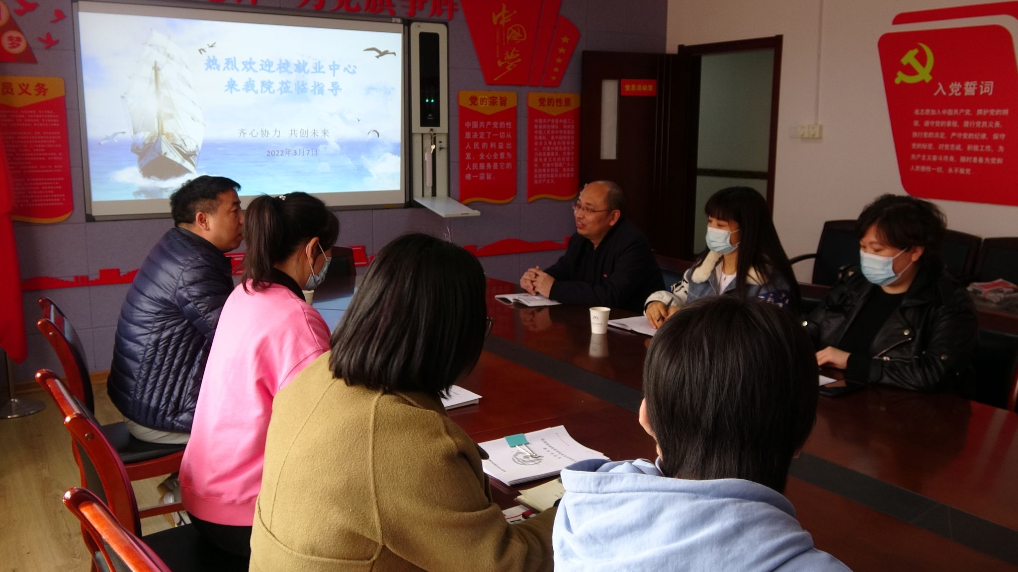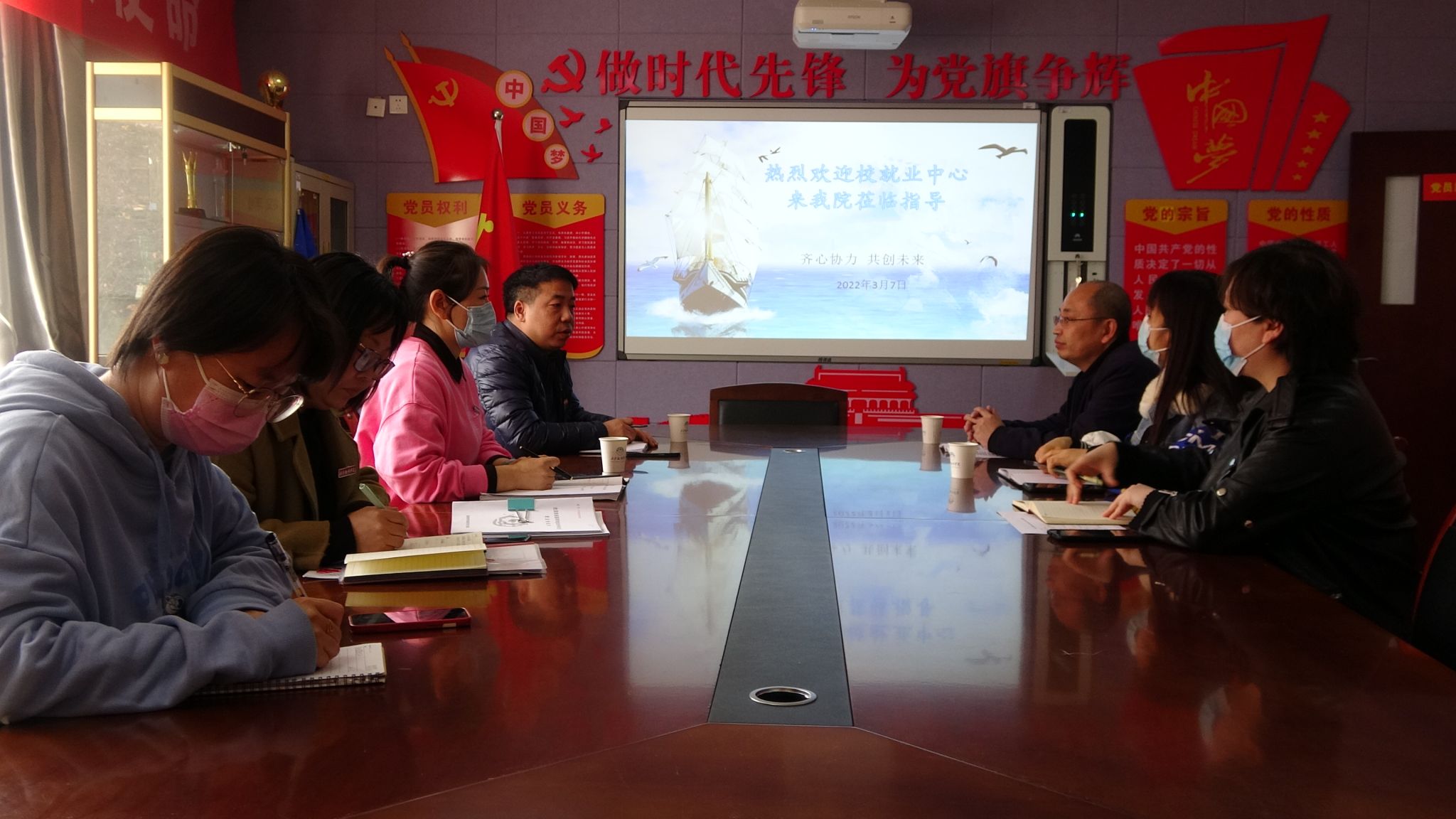 为做好2022届毕业生就业指导服务工作,了解毕业生求职心态,引导毕业生正确认识就业形势,积极开展多渠道就业工作,3月7日下午,KY开元集团举行2022届毕业生就业形势调研座谈会。就业指导中心副主任赵东良莅临指导。KY开元集团党委书记、副院长蒋小军,就业事务专员郭萍,学工办主任刘红娟、学工干事刘媛媛,2018级辅导员杨春娟、陈晓楠参加调研座谈会。会议由蒋小军主持。