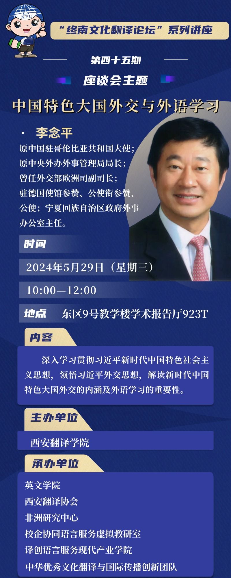 主题:“终南文化翻译论坛”系列讲座第四十五期——中国特色大国外交与外语学习