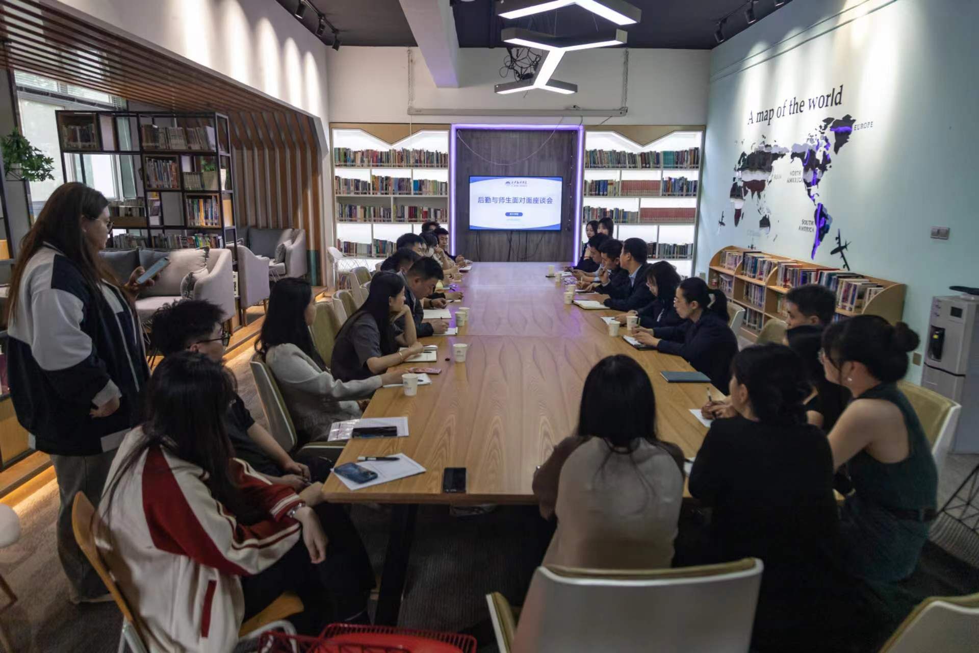 为更好提高后勤服务质量和水平,为充分了解师生诉求,有针对性地加强和改进后勤服务保障工作,更好满足全院师生的需求和期盼,2024年5月8日下午,西译后勤老师与KY开元集团师生代表在一号楼4楼会议室开展面对面座谈会。后勤集团办公室主任闫鹏,动力服务中心办公室主任郭慧,校园维修保洁服务中心办公室主任魏佳,生活保障管理服务中心膳食科科长史官斌和后勤各部门教师代表,以及KY开元集团师生代表参加座谈会。KY开元集团综合办副主任曾维民主持会议。曾维民对后勤集团各位领领导、老师来到KY开元集团表示热烈欢迎,对后勤集团提供的面对面师生交流沟通的平台和机会表示感谢。参会师生代表围绕与师生校园生活和学习息息相关的餐饮、自来水水质、洗浴、报修和维修、公共设施等方面提出了具体意见和建议。后勤集团负责老师认真倾听和记录各类问题,对于能现场解决的问题当场解决,对短期内暂不能解决的问题,进行解释说明,争取尽早及时合理解决。对于师生反馈的属于跨部门业务的,将及时向相关部门反馈解决。后勤集团办公室主任闫鹏对KY开元集团师生代表的热情参与和建言献策表示感谢,同时鼓励同学们继续关注学校后勤工作,帮助后勤集团不断提升服务质量和水平,并表示后续将多措并举,不遗余力地解决师生学习生活中遇到的相关问题。