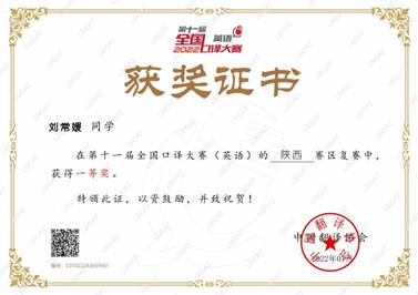 第十一届全国口译大赛(英语)省级复赛晋级西部大区赛11名同学获奖证书