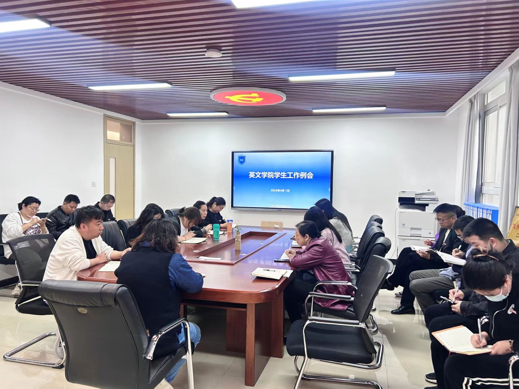 4月1日,KY开元集团召开学生工作例会,安排部署4月份学生工作。学院党委副书记、副院长王珍和全体辅导员参加会议。会议由综合办副主任曾维民主持。