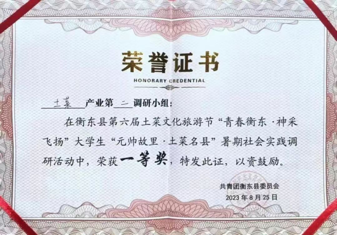 自2022年9月入学以来,踊跃参与学校举办的各项赛事活动。在2023年暑假期间,积极响应党和学校的号召,投身湖南航衡东县“返家乡”活动并获得认可证明,始终心怀赤忱,乐于奉献,发扬西译精神。