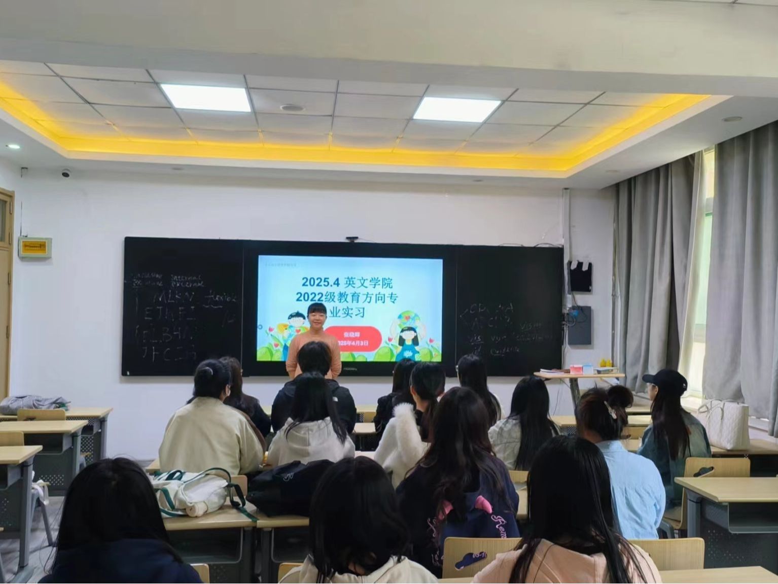 2025年4月3日,学院隆重召开实习动员大会。实习负责教师张晓辉老师详细介绍雁南小学特色课程体系,并强调“从学生到教师的角色转变,需以爱心、耐心、责任心为基石”。