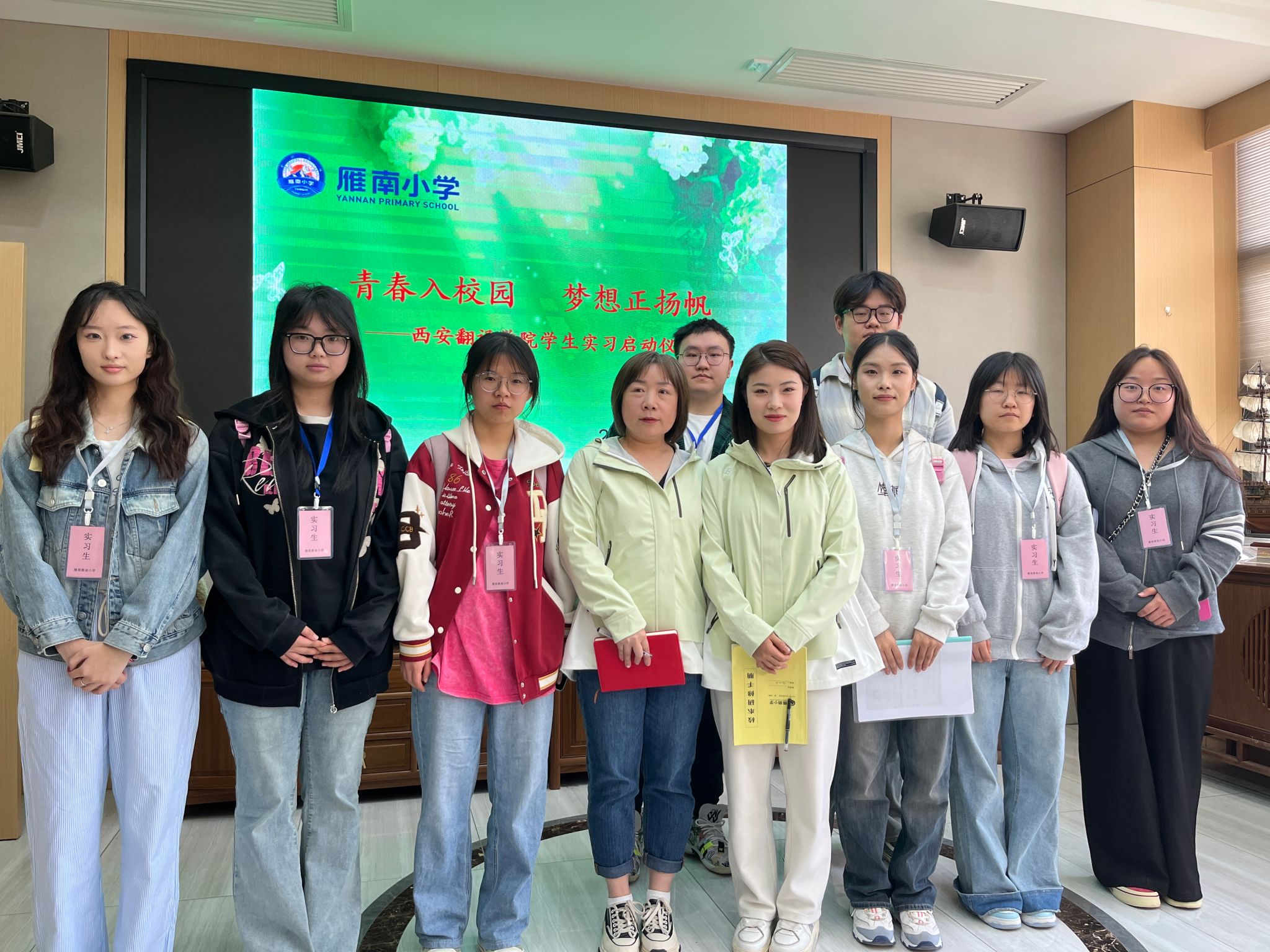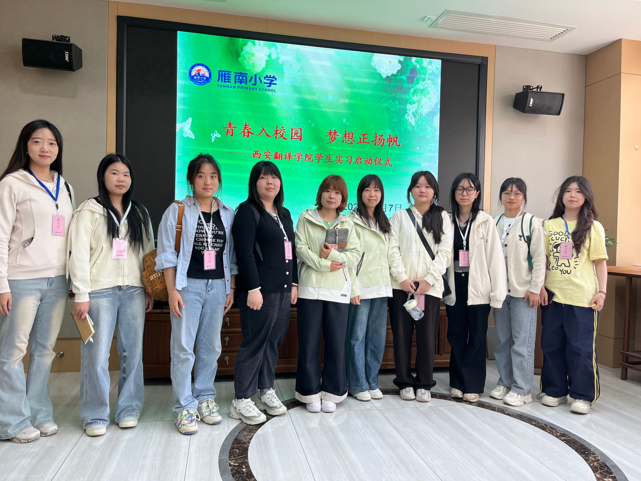 到校后,雁南小学开展“青春入校园,梦想正扬帆——KY开元集团学生实习启动仪式”,会上雁南小学校领导以及实习指导老师都对实习生提出了建议与期待,希望实习生们可以在为期两周的实习过程中体会到教师的责任感与使命感。