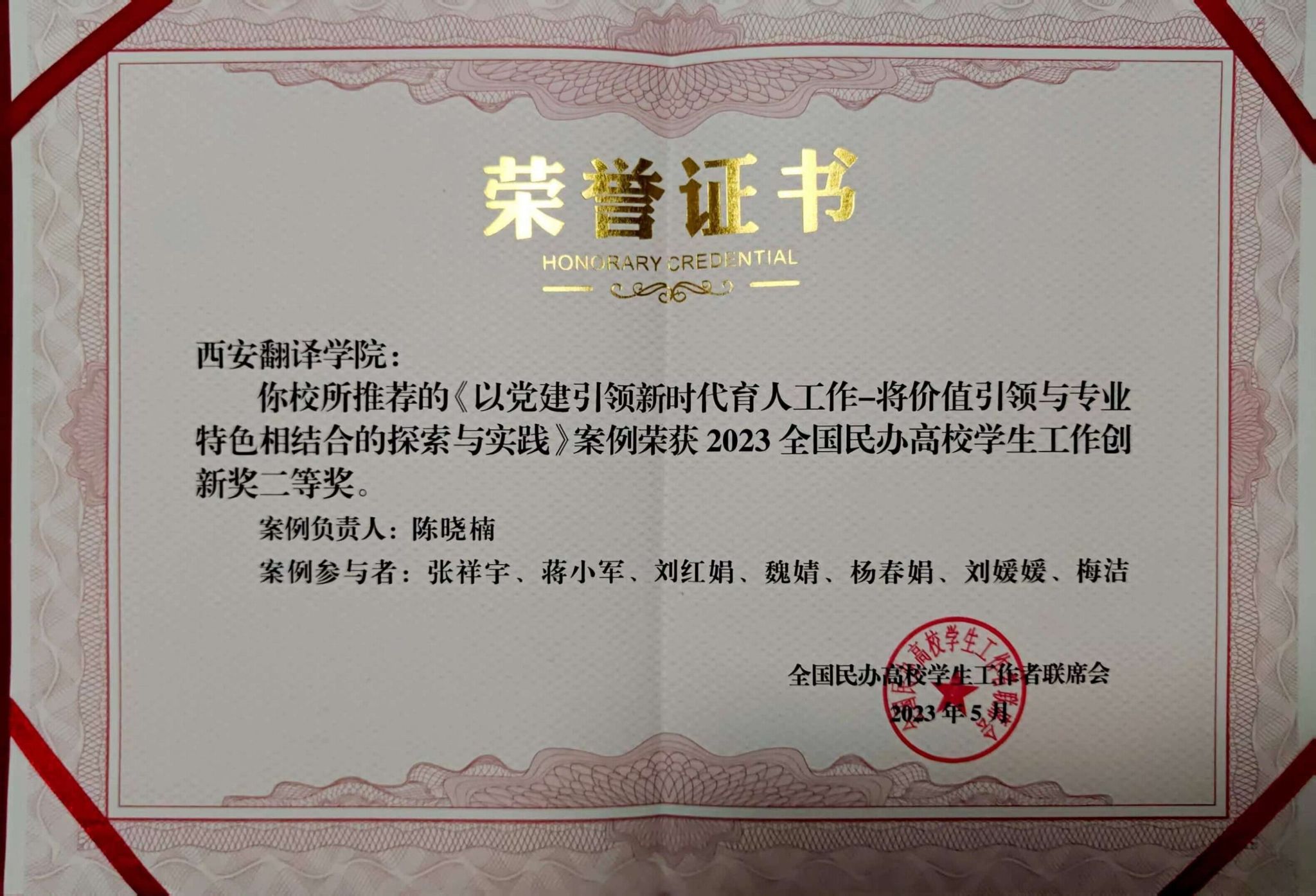 蒋小军受邀在创新报告环节中做关于《育人五“度”,从创新管理路径浅谈思政育人成效》的报告。报告从育人的“力度、高度、温度、广度、深度”五个视角出发,介绍了我院在创新管理路径、增强思政育人成效等方面的实践探索。他提出,加强民办高校学生工作要优化学工队伍,强化育人力度;要以人为本,体现育人温度的理念;要剖析当前学工困境,以解决学工人员乐学、善学、为学为核心任务,阐释辅导员品牌创建的路径。报告得到与会人员的一致好评。经各院校推荐、联席会组织专家评议,我校陈晓楠的《以党建引领新时代育人工作——将价值引领与专业特色相结合的探索与实践》荣获2023年全国民办高校学生工作创新奖二等奖。