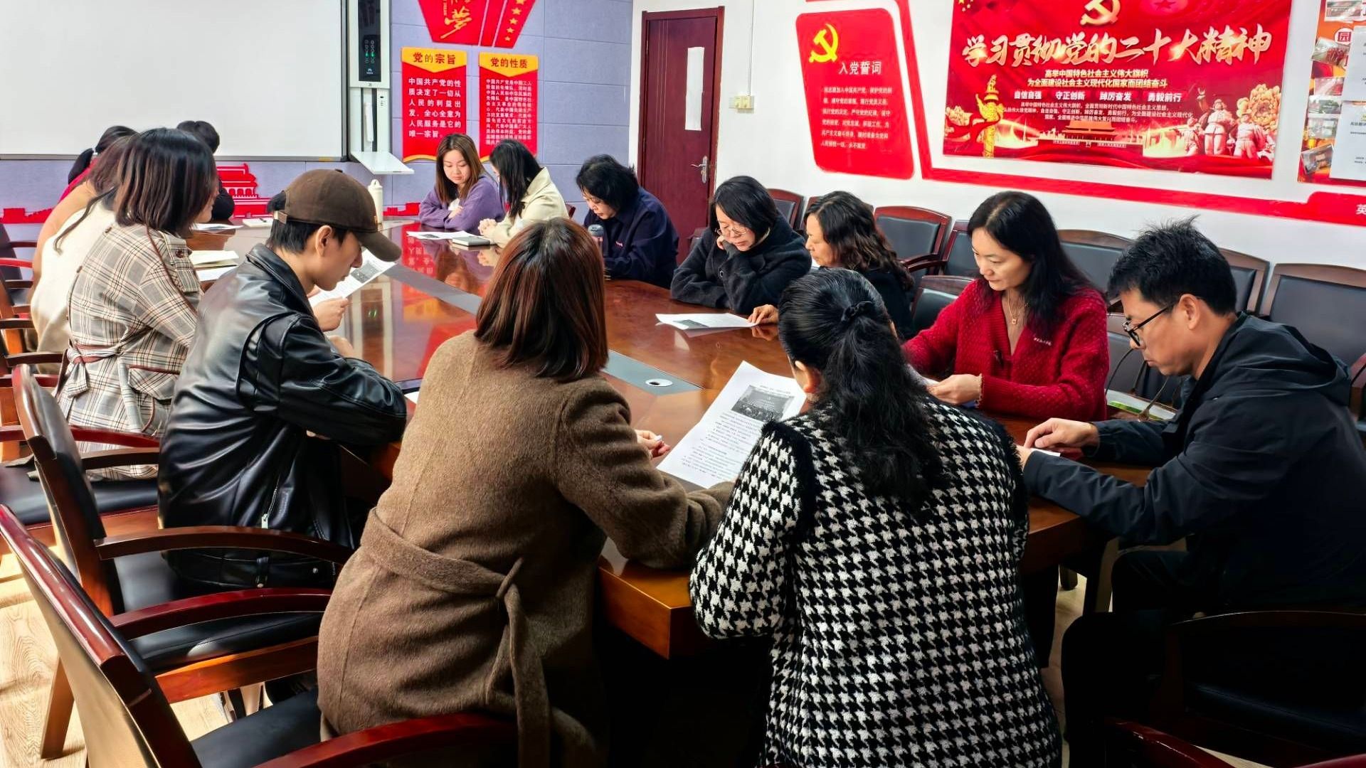 党的二十届四中全会作为向第二个百年奋斗目标进军新征程的重要会议,擘画了“十五五”时期发展蓝图,其中“科技自立自强水平大幅提高”等部署为高校人才培养指明了方向。首先,王颖慧书记带领全体支部党员研读《建议》核心内容,重点解读了《建议》中提出的“十五五”时期经济社会发展主要目标与社会发展必须遵循的六项重大原则。党员们一致认为,全会审议通过的规划建议是指导现代化建设的纲领性文件,充分彰显了党中央的历史主动精神。